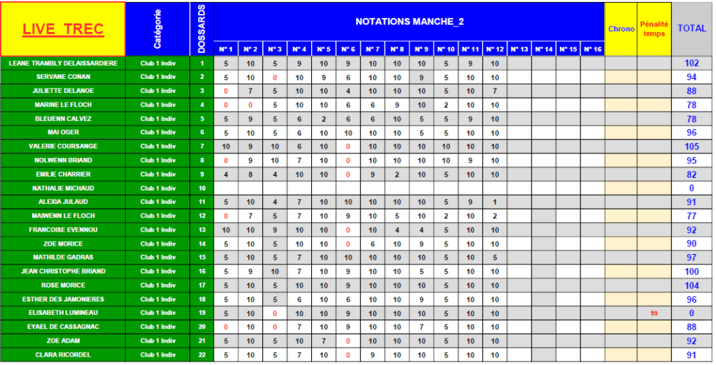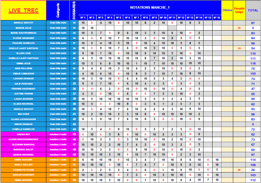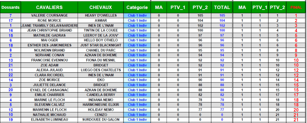 Club 1 - Résultat détaillé