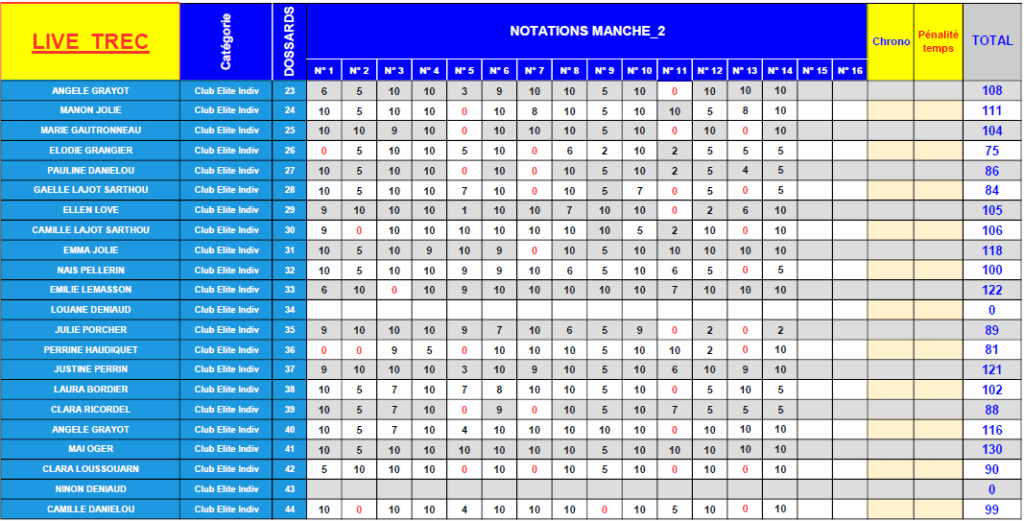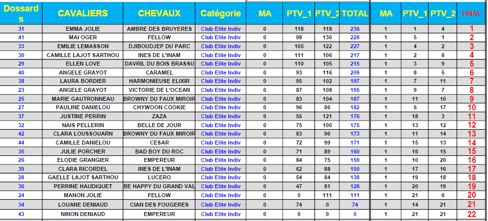 Classement Club Elite