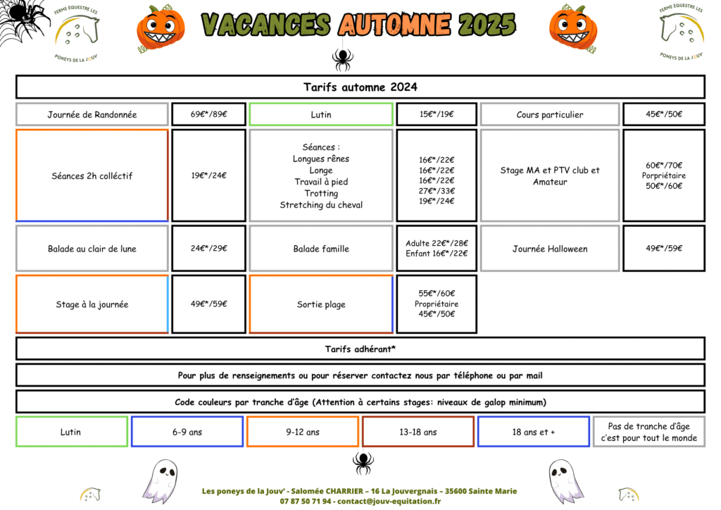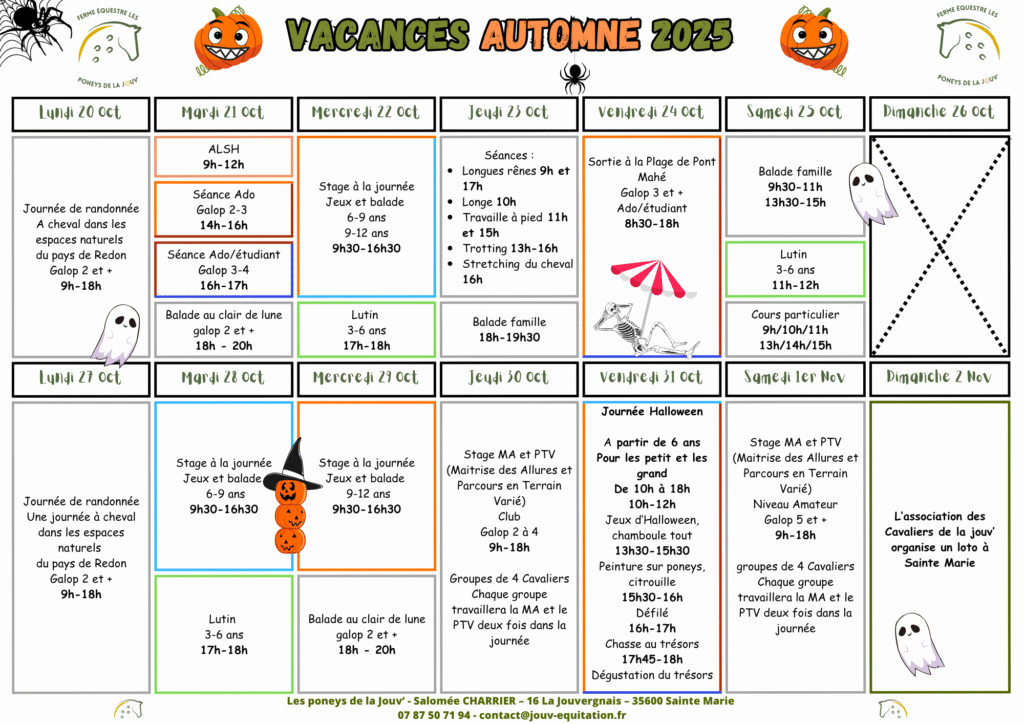 L'équipe de la ferme équestre les poneys de la jouv' est heureuse de vous présenter le programme des vacances d'automne. Composer de stage pour les petits comme les grands, pour les débutants et les confirmés pour les familles et les amies, venez passer un bon moment avec les poneys